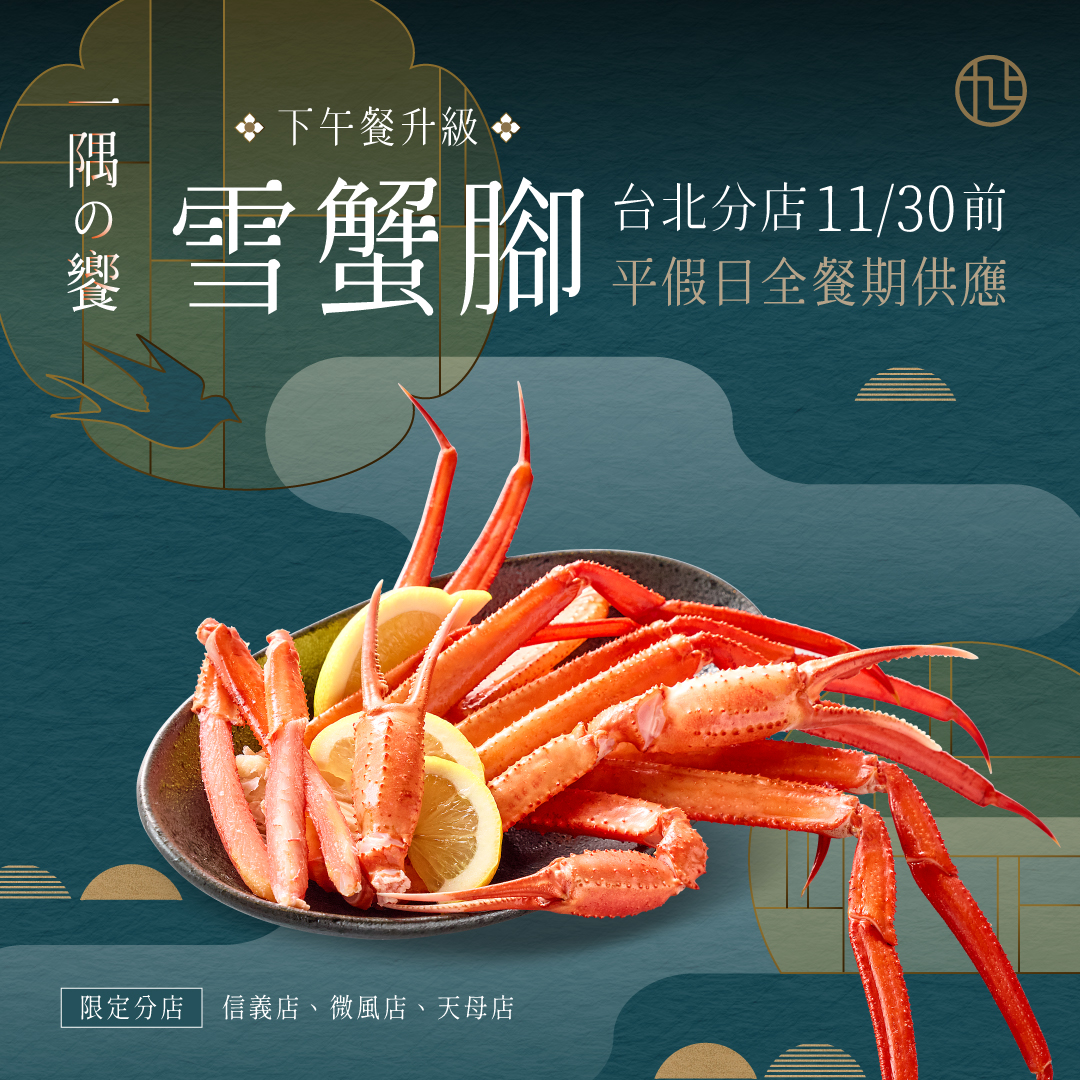 【好評延長】11/30前台北分店限定 供應雪蟹腳!